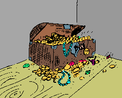 Hurra! Der Schüssel passt und mit dem Stemmeisen ist die Truhe mühelos zu öffnen. Du hast es geschafft! Jetzt bist Du reich!